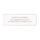 Essas etiquetas de endereço de retorno de casamento minimalistas e elegantes apresentam texto vermelho-escuro moderno em um fundo branco. Uma aparência simples e na moda.