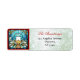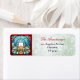 Design de vidro brilhante e vibrante manchado, de buquê e vela ocas de Natal multicolorido, num quadro vermelho. Com fundo de efeito de brilho verde pálido e letra bonitinha no estilo de escrita manual. Personalize para incluir seus próprios detalhes de nome e endereço.