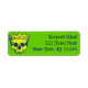 Etiquetas de endereço de crânio coroado. A cor de fundo e o texto podem ser personalizados.