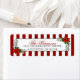 Bonito design floral de inverno para estas etiquetas festivas de Natal com um fundo listrado de cana-doce vermelho e branco.