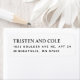 Endereço clássico de retorno com etiquetas alinhadas à esquerda. Fonte de serifa preta em um fundo branco. Mantenha a aba esquerda frontal ou traseira dos envelopes e pequenas embalagens.