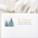 Watercolor winter trees in shades of green paired with script and modern typography address label.