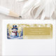 Adicione um toque caprichoso aos seus cartões de Natal de saída nesta temporada de férias com as etiquetas de endereço de retorno de férias de Natal Douradas na Floresta de inverno Snowman. Design de etiqueta de endereço mostra um bonitinho bonitinho de neve em um charmoso chapéu e cachecol em uma cena de floresta de inverno com queda de neve. Itens adicionais de presentes e feriados disponíveis com este design também.