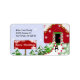 Uma etiqueta de feriado divertida com um Workshop de Papais noeis com um cartaz que diz Feliz Natal. Um fundo floco de neve. Personalize com todas as suas informações conforme desejado.