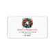 Etiquetas de endereço com bonito coroa de Natal. Uma imagem festiva com um pínus corado com flores vermelhas, holly e um adorável arco azul. Que encantador.