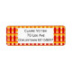 Essas etiquetas de endereço de retorno têm uma design de Art Deco de uma xadrez com linhas grossas e finas em vermelho, laranja e amarelo.