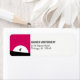 Etiquetas de endereço com uma criatura zombie legal. Esquema de cor rosa e preto a negrito vibrante. Uma silhueta zumbi com braços estendidos na caça por cérebros. Uma grande lua branca ilumina por trás.