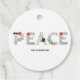 Termine seus presentes de Natal com essas lindas e festivas etiquetas de presentes de Natal com seu nome ou escolha de personalização. A etiqueta de presente festiva baseada na tipografia apresenta "PEACE" na frente em letras florais festivas. Adicione uma mensagem festiva personalizada na parte traseira da etiqueta, se desejado.