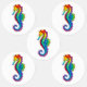 Articulação artificial, brilhante, arco-íris, cavalo de mar poligonal sobre fundo branco. Tatuagem brilhante.