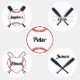 Um conjunto de autocolantes de baseball. Cinco designs diferentes de baseball. Personalize adicionando o nome do seu filho. Os rótulos são à prova de água e podem ser utilizados em qualquer coisa, a partir de vestuário, livros, pratos, etc. Maneira útil de garantir os pertences do seu filho, fique com eles.
