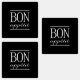 BON APPETIT Food Labels. Folhas adesivas pretas à prova de água com uma impressão de texto de citação de comida BON APPETIT branca. Disponível em forma quadrada e redonda.