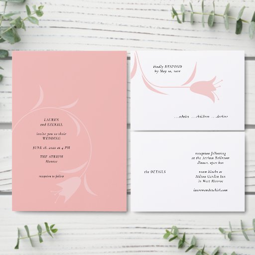 Um quadro estilizado de flores detalhes do casamento nesta elegante design mínima.