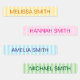 Etiquetas modernas e simples de nomes à prova d'água que podem ser codificadas por cor e personalizadas para crianças para roupas, caixas de almoço ou de volta para suprimentos escolares. Todas as cores neste design são editáveis.
