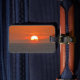 Clássico design de pôr do sol inspirado na Califórnia acenando com férias para a areia e o mar.