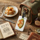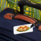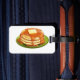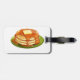 Este design é um cheio de pratos de panquecas deliciosas. No prato estão três panquecas com xarope de bordo rolando sobre eles e um pouco de manteiga derretendo no topo. Eles parecem tão deliciosos. Este design de panquecas parece excelente nestas etiquetas de bagagem. Perfeito para si mesmo ou como presente