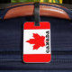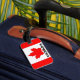 Etiquetas de bagagens com a bandeira canadiana e a menção Canadá.
