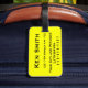 Etiquetas de bagagens da Lituânia. Esta etiqueta tem a bandeira do seu país nas cores reais e no verso todas as suas informações de casa para a sua segurança desta mala