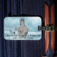 Etiqueta de bagagem de sereia com imagem de uma sereia alegre no mar e uma citação de E, E, Cummings.
