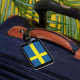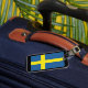 Etiquetas de bagagem de Suecia. Esta etiqueta tem a bandeira do seu país nas cores reais e no verso todas as suas informações de casa para a sua segurança desta mala