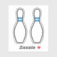Adesivos com duas pinos de boliche branca com faixas azuis e contornos pretos.