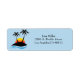 Etiqueta de endereço de retorno mostrada com um design impressão gráfico de praia palms em uma cor azul de fundo. Personalize este item e altere o texto para o seu.