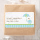 Etiquetas de endereço com um elefante azul giro e uma ave segurando um guarda-chuva. Design perfeito para chás de fraldas, anúncios de nascimento ou festas de aniversário infantis. Arte por estúdio de cacau