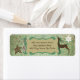 Etiquetas de endereço de retorno de feriado com um fundo creme e floco de neve lacrimogêneo, veado de silhueta marrom, ornamentos pendurados e uma moldura cor-de-rosa onde você pode facilmente adicionar seu nome e endereço antes de fazer o pedido.