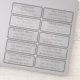 Folha de adesivos transparente com endereços individuais, adequada para envio postal.