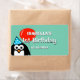 Crianças personalizadas etiquetas de garrafas de água primeiro aniversario com pinguim engraçado e balão vermelho colorido mais nome. Modelo do adesivo de frasco DIY animado personalizado. Tipografia de na moda para nome e data de bebê ou menino. Use como decoração de mesa elegante ou obrigado que você prefere para convidados na festa. Design de modelo neutro com cor de fundo personalizável. Ou seja, azul pastel, cinza leve, roxo ou amarelo macio.