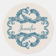 Os adesivos Chic Damask Elegantes e sofisticados com fundo bege macio e um ornamento na moda amarrável florescem em azul escuro. Esta design moderna é fácil de personalizar com o seu próprio texto. Clique em "Personalizar" para encontrar mais opções de personalização.