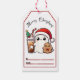 Etiquetas festivas desenhadas para presentes de Natal dando uma vitrine adorável segurando uma bebida e um biscoito de pão de gengibre. Perfeito por adicionar alegria ao seu presente de feriado nesta temporada.
