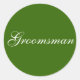 Etiquetas verdes com "Padrinho de casamento" em texto branco