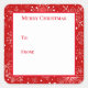 Uma impressão de festas de neve vermelha e branca, festas de Natal festivas, é mostrada nesta casca de etiqueta de presente quadrada e adesivo. Vinhetas pequenas mostradas. Personalize mais ou mais comprares como está. Imagem do stock
