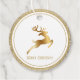 A etiqueta de presente é criada sobre um fundo branco com sotaques de falso brilho, bordas coloridas em ouro mate e texto de Feliz Natal saudando seu receptor de presente com uma imagem dourada centrada de uma rena surpreendente. Cor Branco/tom dourado. Personalize este item ou comprar como está.