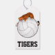 etiquetas de presentes impressas com uma mascote de tigre agachada sobre um voleibol com a palavra TIGERS no fundo. Editar o texto de uma marca personalizada.