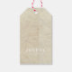 Uma etiqueta de presente de moda com uma textura de papel enrugada e divertida.