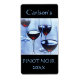 Etiqueta de vinho caseira com design de óculos de vinho, com texto e fonte personalizáveis. Orientação vertical.