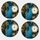 Turquesa, texturizada, fundo steampunk com latão e engrenagens douradas, chave prateada e relógio. Estilo Steampunk.