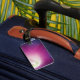 A única coloração roxa desta etiqueta de bagagem (incluindo a precinta de couro) é a de uma fotografia de perto do interior de uma flor silvestre da Glória da Manhã rosa-púrpura. É incrível para nós que esta flor delicada e pequena pode produzir um esquema de cores assim. Também temos bagagem complementar. Obrigados para comprar conosco!