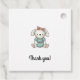 Um pequeno favor para o seu chá. O favor com o roteiro "Obrigado por vir!", uma doce menina ursinho de aquarela, o nome da futura mãe e a data do chá.