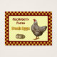 Estes cartões são etiquetas perfeitas para o seu negócio de ovos frescos. Eles têm um aspecto e uma sensação de país excelente, com uma imagem vintage de uma galinha no canto direito, e três ovos estilo vintage sob o texto "Ovos frescos". Os controlos do país vermelho e amarelo fazem fronteira com o exterior. Se você tem um pedido especial, ou quer ajudar na personalização, por favor sinta-se à vontade para me contactar, e eu ficarei feliz em ajudá-lo.