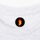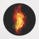 Pena de pavão brilhante feita de fogo e chamas sobre fundo negro.
