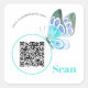 Etiqueta de código QR da borboleta de cor d'água elegante. Anuncie e comercialize sua empresa com esses adesivos de código QR. Anexar aos remetentes, folhetos e produtos. Os clientes apreciarão este design de aquarela e a aparência.