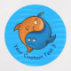 Yin Yang Fish Cartoon de um peixe azul e laranja em fundo azul sem costura. Custom Text.