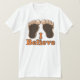 Você acredita nas observações de Bigfoot, de Yeti ou de Sasquatch? Um par de pés peludos marrons grandes com as palavras que eu acredito na laranja em camisetas, t-shirt, roupa, roupa e mais mercadoria e presentes do cryptid. Um presente bonito e engraçado para um cryptozoologist, qualquer um interessados no criptozoologia, um caçador grande do pé, o pesquisador ou o qualquer um que apreciam o humor de Bigfoot.