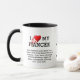 ADORO A MINHA BOMBA cristã personalizada FIANCÉE COM TEXTO PERSONALIZÁVEL. Mug de café CRISTÃO simples, na moda INSPIRACIONAL, que diz que EU AMO MEU FIANCÉE e inclui corações vermelhos. Abaixo está o texto baseado no verso da Bíblia de 1 Corinthians 13. Um presente ideal para casais noivos, Anniversários, Natal, Aniversários, NAMORADOS etc. Você pode adicioná-los à sua mesa comercial em conferências e convenções de relacionamento, substituir o verso Bíblia pelo seu próprio lema ou mensagem personalizada, ou dar como presentes favoritos. NAMORADO, NAMORADA, MARIDO, ESPOSA, FIANCÉ e FIANCÉE disponíveis.