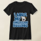 Comprar para camisas americanas bonitos do buldogue em nossa loja em linha! O lado direito do design mostra um desenho da intimidação, com impressão azul dois-tonificado retro. Lê, "mim ama meu buldogue americano." Esta mercadoria deliciosa do buldogue para amantes do cão foi tirada em um estilo adorável dos desenhos animados do kawaii. Nós igualmente temos este design em uma seleção fantástica de outros produtos americanos do buldogue, incluindo camisas.