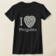 Um aglomerado de pinguins formando forma cardíaca, os pinguins não são todos idênticos, estão em poses ligeiramente diferentes e têm uma variedade de cores oculares. "Eu adoro pinguins" Esta impressão usa camisas de dardo, eu também tenho uma listada para camisas leves.