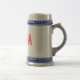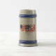 Uma caneca de café de dois tons com um coração "Eu amo os EUA" e designs de bandeira vermelha, branca e azul.