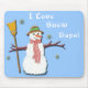 Este mousepad é um presente agradável para o professor ou o estudante que aprecia ter um dia livre! O mousepad é imprimido com um boneco de neve bonito vestido em um chapéu e em um lenço vermelho que guardaram uma vassoura durante uma queda de neve.